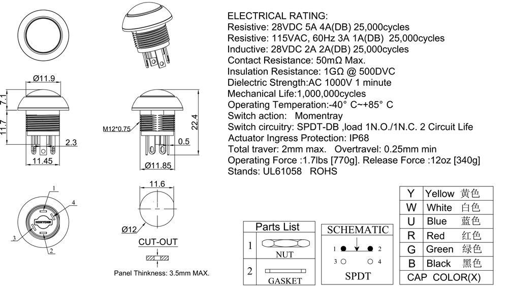 Resistive: 115VAC,60Hz 3A 1A(DB)25,000cycles