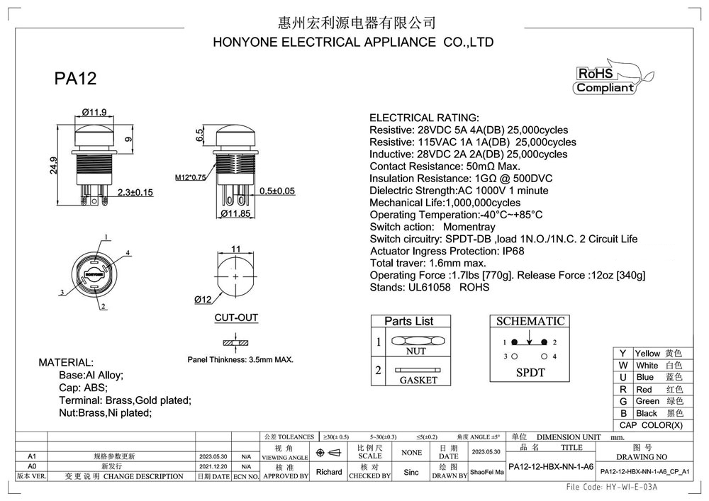 產(chǎn)品型號(hào):PA12-12-HBY-NN-1