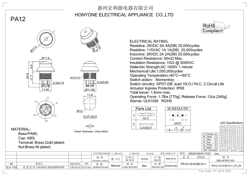 產(chǎn)品型號:PA12-12-HL-BO-O2-3