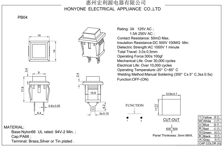Rating:3A 125V AC 1.5A 250VAC